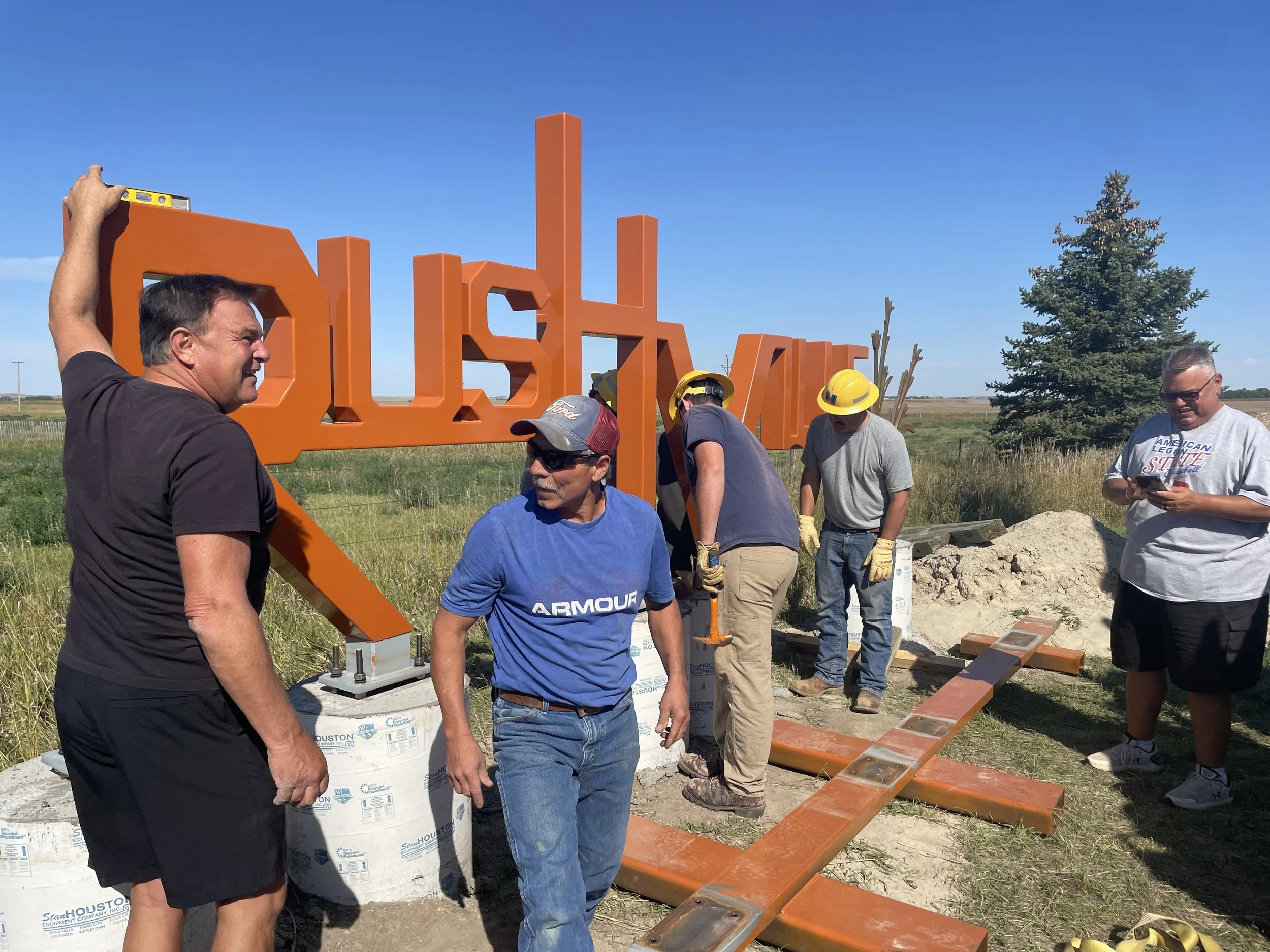 The design was made with Rushville's weather in mind; the sign itself is made of steel with various COR-TEN elements. The color chosen connects the sign to the brick of the historic Sheridan County Courthouse.